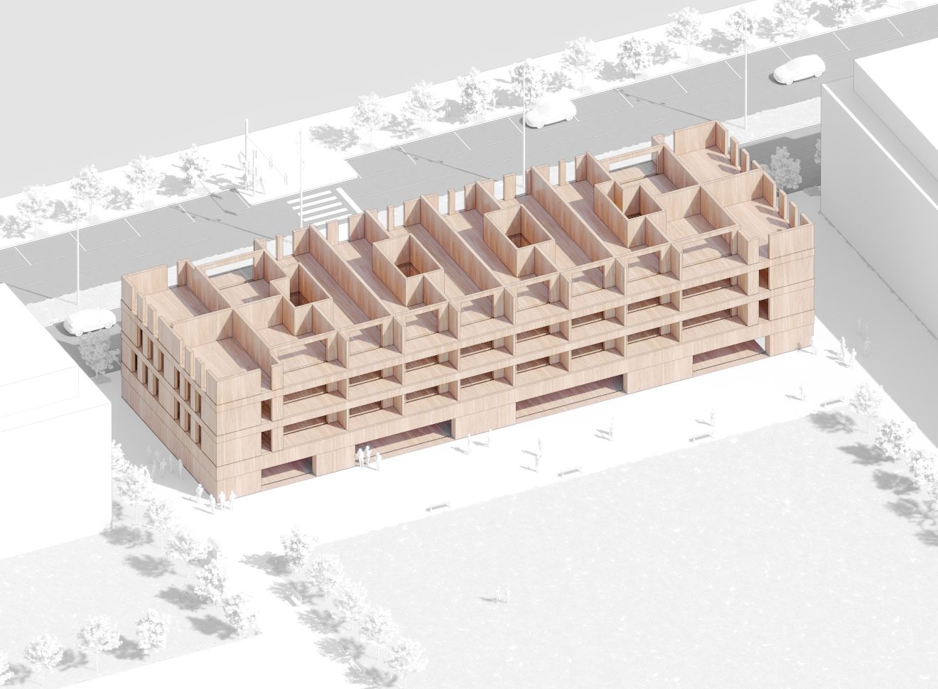 Dar solución al programa de forma sencilla, con criterios asimilables a construcciones de consumo casi nulo. Las viviendas disponen todas ellas de doble orientación, 18 viviendas de dos dormitorios con orientación Norte-Sur y 12 viviendas de tres dormitorios con doble orientación, 3 viviendas de 4 dormitorios con orientación Norte-Sur y 4 de 1 dormitorio con orientación doble en áticos. Se obtiene así un total de **37 viviendas **que superan el número señalado en la ficha urbanística pero dentro del incremento de viviendas permitido en la misma según el cómputo del número de piezas.